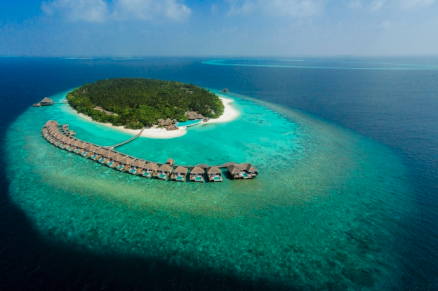 モルディブのリゾート選びでは、マレ空港からの移動時間も大切なポイントです。 デュシタニがあるバア環礁までは、水上飛行機で約30分。 遠すぎず、程よい距離感です。