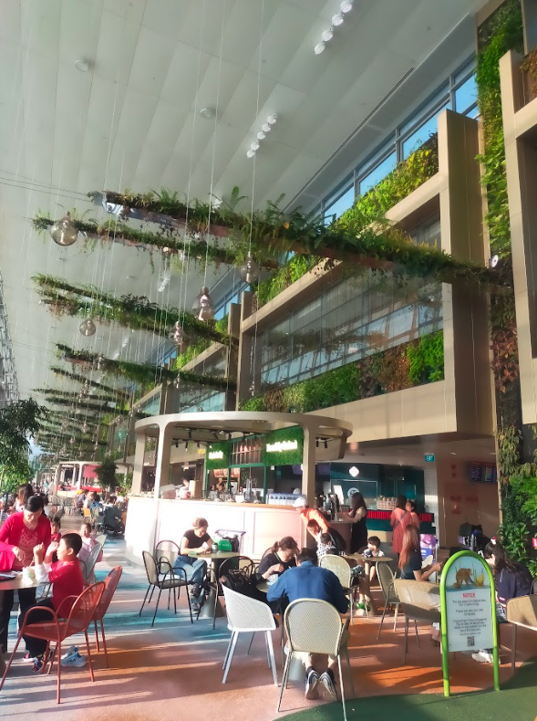 羽田空港の様子はあまり写真を撮っておらず、いきなりトランジットのシンガポール空港です。空港内はかなり広く飽きずに時間を潰すことはできました。朝早くの到着でしたので最初は開いているいるお店はまばらだったと思います。トランジットで待つ時間が長かったですが、空港内に遊具なども結構ありましたので子供たちもそこまで退屈はしませんでした。