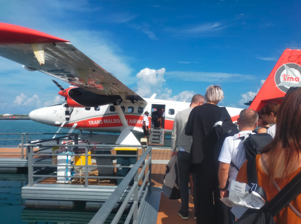 スタッフさんに呼ばれました。人生初めての水上飛行機です。ドキドキします。