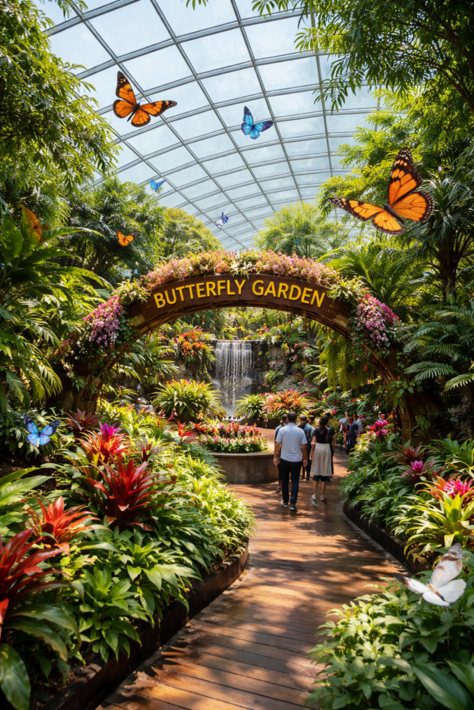 次に直行したのが「HUMIDITY-CONTROLLED BUTTERFLY GARDEN」(T3・3階)。