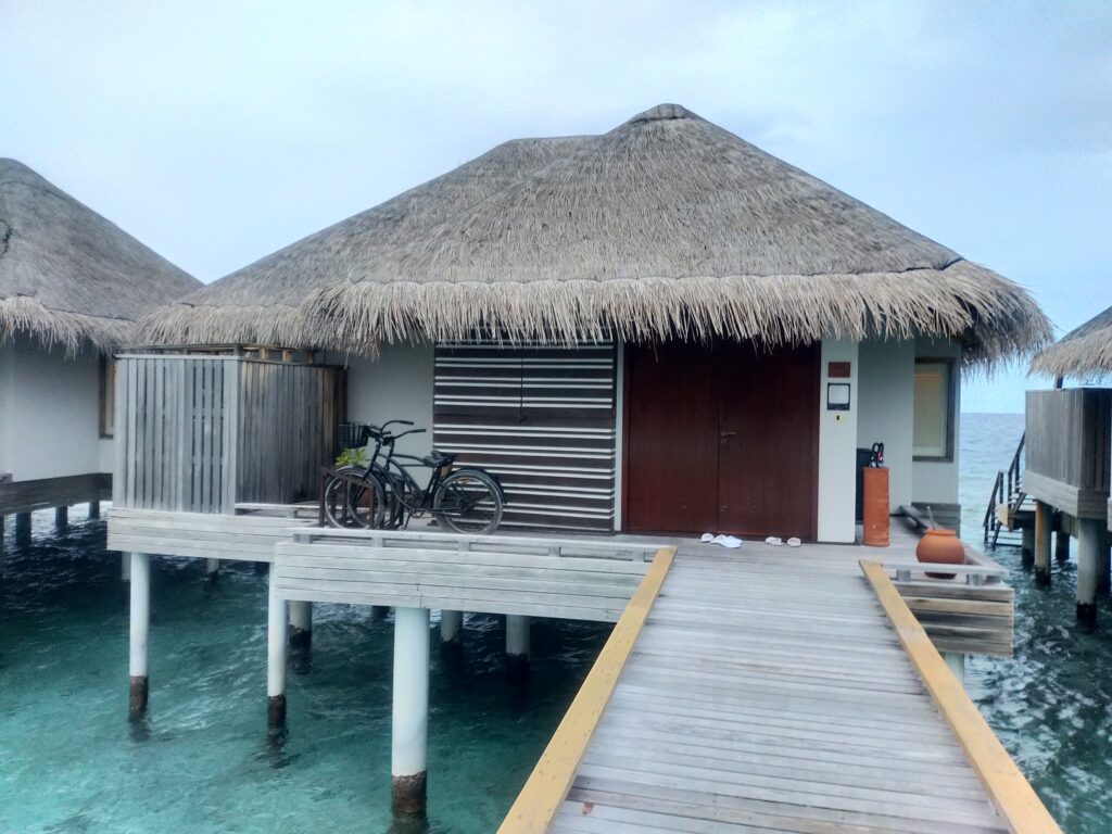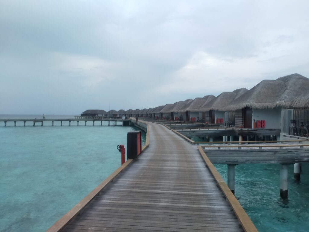 まずは「水上ヴィラ」。こちらには泊まらなかったですが、現地で散歩して見てきました。まさにモルディブの宿といえばこれですよね。